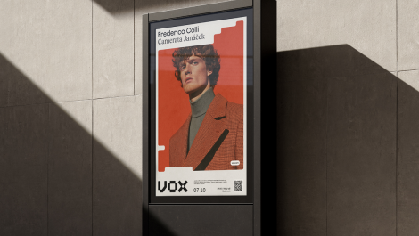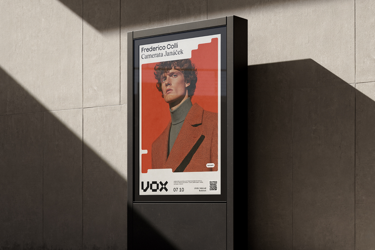 Důležitou roli hraje typografie. Logotyp VOX vychází z mřížky 4×4, která zajišťuje jeho stabilitu i reprodukovatelnost.