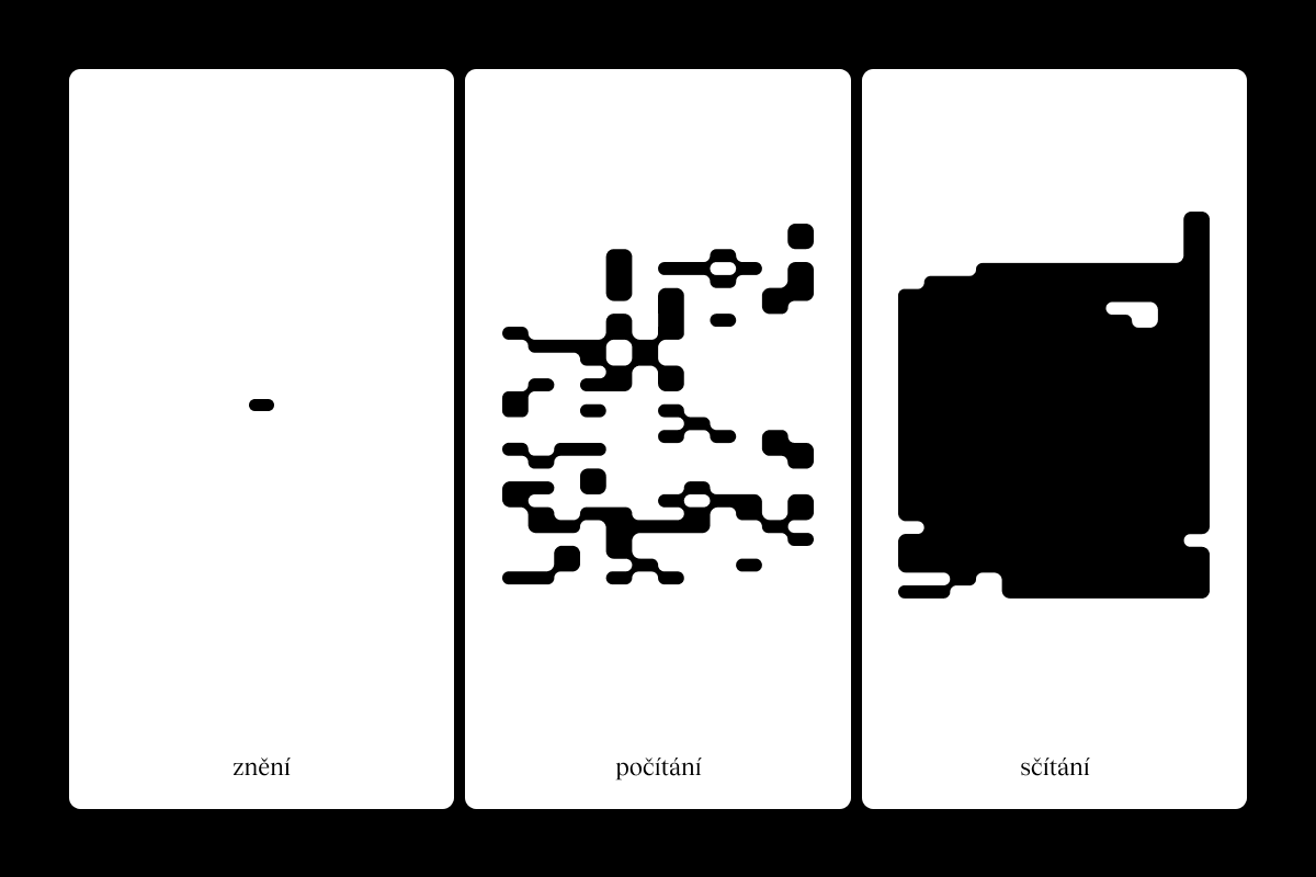 Vizuální systém stojí na mřížce vycházející z poměru 2:1, inspirovaného fasádou budovy. Z ní vznikají kompozice, které lze flexibilně přizpůsobovat různým formátům i typům komunikace. Právě tato schopnost adaptace je klíčová pro současné kulturní instituce, které komunikují napříč médii i publiky.